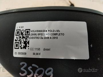 SPECCHIETTO RETROVISORE DESTRO VOLKSWAGEN Polo 5° Serie SPECCHIO MANUALE (09>17)