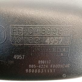 Specchietto retrovisore interno elettrocromico originale, smontato da Peugeot 3008, perfettamente funzionante e compatibile con numerosi veicoli del gruppo PSA.Codice OEM PSA 98088311XT, prodotto da Bosch / Hella (codici secondari: F00DXC4R, 905-4224, 46 046396), completo di supporto posteriore e cablaggio con attacco originale.Conosciuto anche come specchietto elettrocromatico interno, specchio antiabbagliamento automatico o specchietto fotocromatico abitacolo, è dotato di sensore luce e sistema oscuramento automatico.Struttura in plastica nera opaca con sensore integrato, installazione diretta senza modifiche, ricambio testato e garantito.