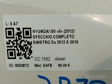 SPECCHIETTO RETROVISORE SINISTRO HYUNDAI i30 Serie 5 PIN SPECCHIO D4FB (12>18)