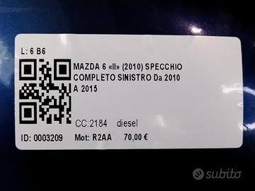 SPECCHIETTO RETROVISORE SINISTRO MAZDA 6 Berlina 2° Serie 7 PIN SPECCHIO R2AA (08>13)
