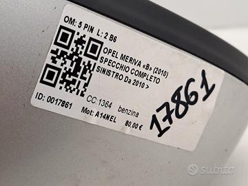 SPECCHIETTO RETROVISORE SINISTRO OPEL Meriva 3° Serie 5 PIN SPECCHIO A14NEL (10>)