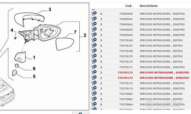 Retrovisore sinistro Specchio sinistro sx Fiat Tipo 735705172 735807761