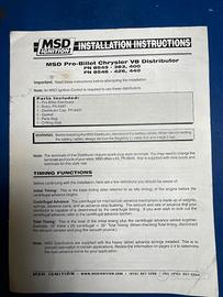 Vendo spinterogeno MSD Pro Billet per motore Mopar (Chrysler/Dodge/Plymouth) Big Block B (383/400), part number 8545, usato, completo di libretto di istruzioni originale. La calotta è in ottime condizioni, il rotore è consigliabile sostituirlo (p.n. 8467- costa meno di 20 dollari). In regalo kit per la taratura MSD p.n. 8464. Nuovo costa oltre 500 dollari più spedizione e dogana, chiedo 250 euro.