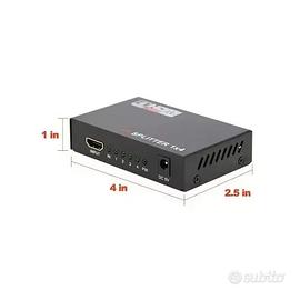 Splitter 1 x 4 Sdoppiatore, Full HD 1080P UHD 4K 3D, 4 Uscite HDMI Amplificate.