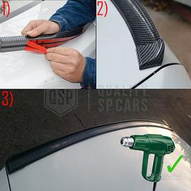 Spoiler Posteriore Adesivo in FIBRA DI CARBONIO PER AUDI, Cofano Posteriore o Tetto in nuova Miscela di EPDM Flessibile - Nuova Miscela EPDM Termico, resistente alle Intemperie - Adattabilità e Aderenza Perfetta - Look Sportivo e Aerodinamico - Facile installazione COMPATIBILITÀ: - AUDI A1 - AUDI A2 - AUDI A3 MONTAGGIO: - Lavare e Pulire accuratamente la superficie sulla quale applicare lo spoiler - Rimuovere la pellicola adesiva 3M, e far aderire lo spoiler alla parte desiderata - Tagliare le parti in eccesso - Applicare i due terminali in ABS Termico forniti in dotazioni SPOILER FLESSIBILE UNIVERSALE IN NUOVA MISCELA DI EPDM EFFETTO FIBRA DI CARBONIO NERO Eccellente qualità dei materiali, finitura, dettagli e tatto. Prodotto in una nuova miscela di EPDM Termico in finitura traslucida, testato da oltre 6 anni per resistere alle intemperie e ai detriti di percorrenza, senza perdere la sua colorazione e caratteristiche. Facile installazione, massima malleabilità per un'aderenza perfetta. DETTAGLI TECNICI: - Materiale: EPDM Gommato (Monomero Diene Etilene-Propilene) di qualità - Colore: Fibra di Carbonio Nero - Finitura: Carbon Look - Peso: 933 Gr (Singolo) - Lunghezza 1600 mm (1,6 mt) - Larghezza 35 mm - Spessore 8 mm - Temperatura di lavoro Compresa tra - 40°C / +65°C - Fissaggio: Pellicola Adesiva 3M - Condizioni: Nuovo - Confezionamento Originale: Scatola di Cartone PER INFO CONTATTARE AL 3927091031 ANCHE LINEA WhatsApp OPPURE VIA E-MAIL: rtautoitalia2018@libero.it CONSEGNA: - Effettuiamo Spedizioni 24-48H in TUTTA ITALIA - Ritiro in Sede con Possibilità di Visionare il Prodotto - Vendiamo solo Articoli Nuovi PAGAMENTI: - PayPal - Con Carta - Bonifico Bancario - Alla Consegna con Contrassegno