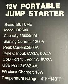 Funzionante, completo di cavi batteria, adattatore accendisigari, cavo USB per la ricarica, custodia, manuale d’uso e scatola originale. Funzioni: Starter batteria auto Caricatore apparecchi elettronici Luce multifunzioni Caricatore wireless