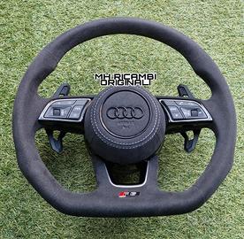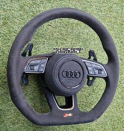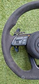 Volante Sportivo Originale Completo Audi RS Tagliato Appiattito Piatto, Full Alcantara con cuciture in Rilievo Grigie.