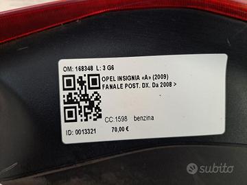 STOP FANALE POSTERIORE SINISTRO OPEL Insignia Berlina 13279627 (08>17)
