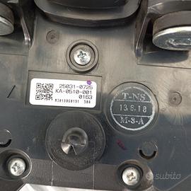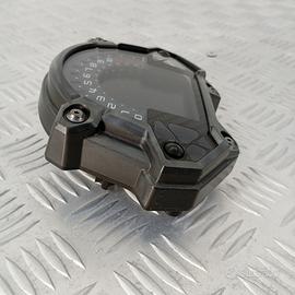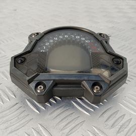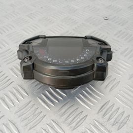 Strumentazione contachilometri multifunzione originale Kawasaki per Z900, codice OEM 25031-0725. Questo strumento combinato è dotato di contagiri analogico con lancetta centrale e display LCD digitale, progettato per fornire tutte le informazioni essenziali di bordo: velocità, giri motore, marcia inserita, temperatura liquido di raffreddamento, livello carburante, contachilometri totale e parziali, orologio e indicatori di diagnostica.Il pannello è stato smontato da una Kawasaki Z900 con circa 40.000 km ed è completo, testato e perfettamente funzionante. Si monta direttamente sulla piastra anteriore del telaio, con attacchi originali e connettore multipolare Kawasaki già predisposto. Struttura compatta, solida, con finitura effetto carbonio visibile nella parte inferiore e 4 punti di fissaggio integrati.Spesso indicato anche come quadro strumenti digitale Kawasaki Z900, strumentazione combinata originale, cruscotto digitale Kawasaki, gruppo strumenti Z900 2017–2019, tachimetro con contagiri analogico, unità multifunzione Kawasaki Z900 OEM.