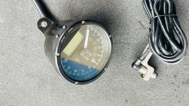 Un cruscotto multifunzionale con le funzioni più importanti. Per moto a due e quattro tempi, quad e ATV con rete di bordo a tensione continua 12 V e batteria. Caratteristiche: Adatto a tutti gli impianti di accensione. Indicazione di velocità digitale fino a 360 km/h (223 MPH). Contagiri analogico 10.000 giri/min. Avviso di cambio impostabile in passi da 100. Contachilometri totale fino a 99.999 km (miglia). Contachilometri parziale fino a 999 km (miglia). Ora in modalità 24 h. Spie di controllo per: neutro, abbagliante, indicatore di direzione e spie di segnalazione. Circonferenza pneumatici di 300 - 2.500 mm programmabili in passi da 1 mm. Acciaio inossidabile. Dimensioni alloggiamento acciaio inox: (Ø x prof.): ca. 79 x 55 mm. Ø anello decorativo in alluminio: ca. 86 mm.