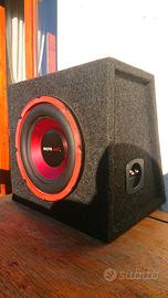 Vendo subwoofer Master audio chiuso, montato in scatola di legno truciolare, smontato anni fa dalla mia auto, tenuto sempre in garage, testato oggi e funzionante. Completo di: 1cavo audio coassiale Audison da 4.5m, due cavi splitter sdoppiatori 1femmina/2maschi (per sdoppiare da 2 a 4 vie), 14 metri di cavo audio alta qualità 2x1,5mm di sezione. Condizioni rivestimento ottime come da foto, solo in un angolo ho fatto un piccolo intervento, cavi perfetti.