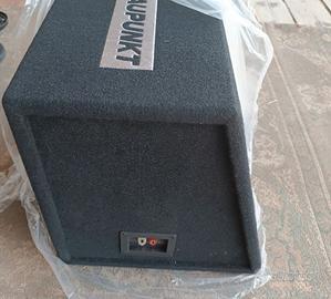 150 € non trattabile! Vendo Solo in blocco!! NO PERDITEMPO! PREFERIBILE RITIRO A MANO PRESSO ROVATO ( PROVINCIA DI BRESCIA) OGGETTI PRATICAMENTE NUOVI FORMULA VISTO E PIACIUTO!Se l' annuncio è visibile l' articolo è disponibile! Per auto Vendo subwoofer gtb300 + amplificatore GTA 475 nuovi!!! amplificatore ancora imballato e subwoofer tolto dalla scatola solo per foto. prezzo: 150 euro ( amplificatore+ subwoofer insieme) qualche dato tecnico: BLAUPUNKT-GTB300 SUBWOOFER BLAUPUNKT GTB300 PASSIVO MAX. 750W: Subwoofer da 300 mm con membrana in SPC, griglia design, carico nominale 250W,impedenza 4 ohm, risposta in frequenza 35 Hz - 500 Hz, efficienza (2.83 V/m)91 dB. Dimensioni: LxAxP 432x387x378 m AMPLIFICATORE GTA 475: Classe amplificatore: Classe AB N. di canali: 4/3/2 N. di strati PCB: 2 Potenza totale massima: 160 W x 4 RMS Potenza (4 ohm): 75 W x 4 RMS Potenza (2 ohm): 120 W x 4 Massima potenza totale a ponte (4 ohm): 240 W x 2 Risposta in frequenza: 10 Hz – 50 kHz Rapporto segnale/rumore: => 96 dB Tensione di alimentazione: 11 – 16 V CC Corrente a vuoto: 0,8 A Regolazione guadagno: 200 mV – 6 V Tipo di crossover: LPF variabile Frequenza di crossover (filtro passa basso): 32 Hz – 250 Hz Frequenza di crossover (passa alto filtro): 20 Hz – 250 Hz Pendenza crossover: -12 dB/oct Controllo livello ingresso Hi-Volt: 3 V Controllo livello ingresso Lo-Volt: 200 mV – 6 V Distorsione armonica totale: <= 0,05% Ingresso RCA: 4 canali Ingresso altoparlante: Sì Fusibile: 40 A x 1 Terminale di alimentazione/terra : Terminale altoparlante a vite: Peso netto a vite: 2,85 kg Dimensioni (L x A x P): 260 x 165 x 58,5 mm