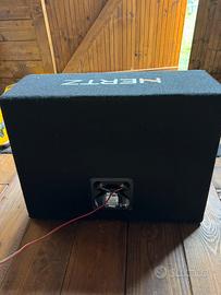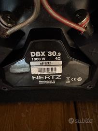 Vendo impianto audio car stereo completo, composto da: ✅ Subwoofer •Marca: Hertz •Modello: DBX 30.3 •Potenza max: 1000 W •Impedenza: 4 Ohm •Diametro: 30 cm (12”) •Box originale Hertz rivestito in moquette •Sub in perfette condizioni, cono e sospensioni integri ✅ Amplificatore •Marca: Hertz •Modello: HCP 2 •2 canali •Filtro passa-basso (LPF) regolabile •Bass Boost regolabile •Amplificatore affidabile e potente, perfettamente funzionante ✅ Cablaggi inclusi •Cavo di alimentazione con portafusibile •Cavi RCA •Cavi di collegamento sub 👉 Pronto per l’installazione, non serve comprare altro ⸻ 📌 Condizioni •Usato ma tenuto molto bene •Smontato da auto funzionante •Normali segni estetici da utilizzo, nulla che comprometta il funzionamento