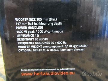 SUBWOOFER HERTZ LEGGEND.ML200.3.NUOVO....2 ANNI DI GARANZIA ANCORA DA METTERE DATA E GIORNO..
