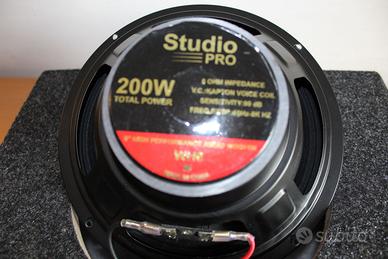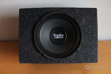 Subwoofer Passivo NON AMPLIFICATO va collegato all'uscita Subwoofer del vostro amplificatore. Marca: Pyramid Studio Pro Modello: WH-8 Subwoofer Auto/Casa Altoparlante woofer da 20 Cm/8 Pollici Pyramid Studio Pro. Cono in carta pressata, Sospensione Acustica Rinforzata, Impedenza 8 ohm, Peso Magnete: 700 grammi. Bobina mobile in Kapton 2,5 cm. Potenza max 100 Watt RMS. NON SUPERARE L A POTENZA MASSIMA RMS Cabinet in Legno MDF alto spessore per evitare risonanze. Rivestito in materiale fono assorbente. Dimensioni in cm 37 X 33 X 12. Completo di vaschetta connessioni e tubo di accordo Bass Reflex. Design Compatto. Ideale per miglioramento del Suono in un Impianto Audio. Adatto a: Auto, Camion, Camper, Suv. Casa per Home Theater e tutte le appicazioni in cui necessita un subwoofer compatto. Condizioni: NUOVO Mai usato ancora nella scatola originale. NO PERDITEMPO - PREZZO NON TRATTABILE