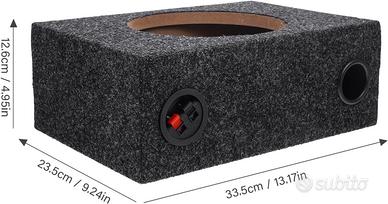 Scatola Studio Pro Modello: WH-8 Per Subwoofer Auto .Contenitore Per Altoparlante subwoofer da 20 Cm/8 Pollici Audio Fai Da Te in Legno MDF alto spessore per evitare risonanze. Rivestito in materiale fono assorbente. Dimensioni come da Immagine, completo di vaschetta connessioni e tubo di accordo Bass Reflex. Design Compatto. Per Miglioramento del Suono Impianto Audio Veicoli. Adatto a: Auto, Camion, Camper, Suv. E UN KIT FAI DA TE VIENE VENDUTO SENZA ALTOPARLANTE Condizioni: NUOVO Mai usato ancora nella scatola originale. Possibile ritiro di persona zona Roma Monteverde.
