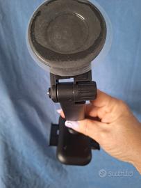 Supporto cellulare per auto con ventosa da applicare al parabrezza. Braccio snodabile e girevole, adatto a tutti i modelli di cellulare grazie alla possibilità di stringere ed allargare il supporto. Tenuta sicura per evitare eventuali cadute. Nuovo mai utilizzato ancora con la pellicola che protegge la ventosa.