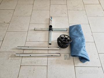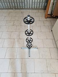 Supporto piedistallo porta ruote Molto pratico e comodo. Smontabile Completo di telo per coprire le gomme una volta riposte. utilizzato sia per cerchi da 16" che da 18" Nessun difetto da segnalare, in ottimo stato