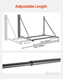 Regolazione flessibile della lunghezza: le barre di supporto regolabili di questo porta pneumatici da parete possono estendersi da 32 a 48 pollici, adattandosi a pareti di diverse dimensioni e soddisfacendo le diverse esigenze di stoccaggio.