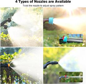 4 Ugelli Regolabili: Il nostro spruzzatore a batteria a pressione è dotato di 4 ugelli: un ugello a ventaglio a spruzzo largo, un ugello a cono regolabile, un ugello doppio di tipo F e un potente ugello regolabile a sei fori. Puoi cambiare il modello di spruzzo cambiando l'ugello ruotandolo per innaffiare piante delicate, prenderti cura del tuo prato, applicare diserbanti, pulire la tua casa o svolgere altre attività.