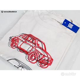T-shirt in cotone bianco con stampa della vecchia Fiat 500 in nero e sopra con il tricolore.