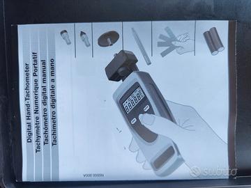 Vendo tachimetro digitale portatile in ottime condizioni, completo di valigetta e accessori originali. Ideale per misurare la velocità di rotazione (RPM) di motori, ventole, trapani e altri strumenti rotanti.