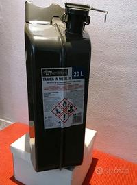 Tanica in metallo adatta per tutti i carburanti liquidi e senza piombo.