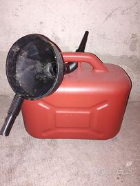 Tanica per carburante con tubo ed inbuto per una facile immissione .