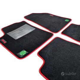 Tappetini in moquette su misura per la tua auto. Il Kit comprende i tappetini anteriori e posteriori realizzati con fondo e bordo antiscivolo incluso il sistema di fissaggio originale (se previsto di serie) per impedire che i tappetini si muovano. I nostri tappeti sono fatti su misura al millimetro in modo che si adattino perfettamente al pianale della tua auto. Il tappetino lato guida è dotato di battitacco in gomma per garantire una lunga durata e puoi infine personalizzare il tuo kit con un testo o un logo. Disponibili varie qualità e colori.