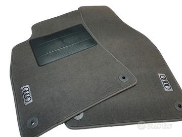 Tappetini in moquette su misura per la tua auto. Il Kit comprende i tappetini anteriori e posteriori realizzati con fondo e bordo antiscivolo incluso il sistema di fissaggio originale (se previsto di serie) per impedire che i tappetini si muovano. I nostri tappeti sono fatti su misura al millimetro in modo che si adattino perfettamente al pianale della tua auto. Il tappetino lato guida è dotato di battitacco in gomma per garantire una lunga durata e puoi infine personalizzare il tuo kit con un testo o un logo. Disponibili varie qualità e colori.