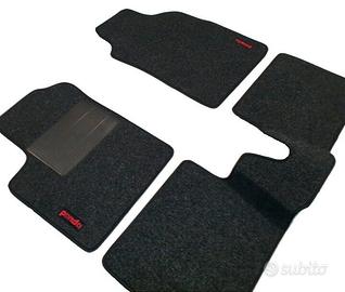 Tappetini in moquette su misura per la tua auto. Il Kit comprende i tappetini anteriori e posteriori realizzati con fondo e bordo antiscivolo incluso il sistema di fissaggio originale (se previsto di serie) per impedire che i tappetini si muovano. I nostri tappeti sono fatti su misura al millimetro in modo che si adattino perfettamente al pianale della tua auto. Il tappetino lato guida è dotato di battitacco in gomma per garantire una lunga durata e puoi infine personalizzare il tuo kit con un testo o un logo. Disponibili varie qualità e colori.