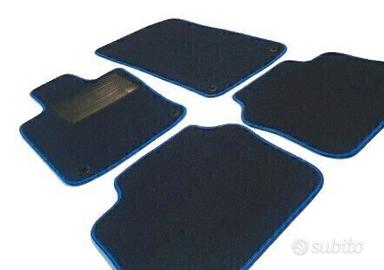 Tappetini in moquette su misura per la tua auto. Il Kit comprende i tappetini anteriori e posteriori realizzati con fondo e bordo antiscivolo incluso il sistema di fissaggio originale (se previsto di serie) per impedire che i tappetini si muovano. I nostri tappeti sono fatti su misura al millimetro in modo che si adattino perfettamente al pianale della tua auto. Il tappetino lato guida è dotato di battitacco in gomma per garantire una lunga durata e puoi infine personalizzare il tuo kit con un testo o un logo. Disponibili varie qualità e colori.