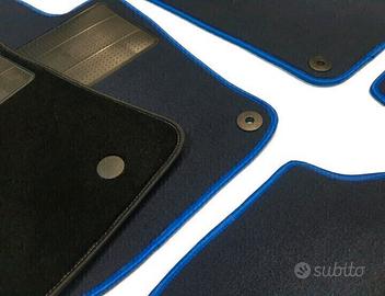 Tappetini in moquette su misura per la tua auto. Il Kit comprende i tappetini anteriori e posteriori realizzati con fondo e bordo antiscivolo incluso il sistema di fissaggio originale (se previsto di serie) per impedire che i tappetini si muovano. I nostri tappeti sono fatti su misura al millimetro in modo che si adattino perfettamente al pianale della tua auto. Il tappetino lato guida è dotato di battitacco in gomma per garantire una lunga durata e puoi infine personalizzare il tuo kit con un testo o un logo. Disponibili varie qualità e colori.
