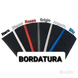 Tappetini in moquette su misura per la tua auto. Il Kit comprende i tappetini anteriori e posteriori realizzati con fondo e bordo antiscivolo incluso il sistema di fissaggio originale (se previsto di serie) per impedire che i tappetini si muovano. I nostri tappeti sono fatti su misura al millimetro in modo che si adattino perfettamente al pianale della tua auto. Il tappetino lato guida è dotato di battitacco in gomma per garantire una lunga durata e puoi infine personalizzare il tuo kit con un testo o un logo. Disponibili varie qualità e colori.