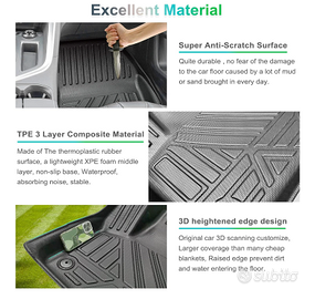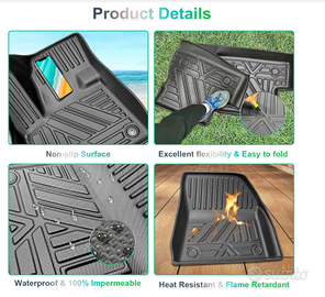 La superficie in gomma termoplastica è impermeabile, lo strato centrale in schiuma XPE leggera assorbe le vibrazioni e riduce i rumori, e lo strato inferiore ha un eccellente effetto antiscivolo. I lati rialzati offrono una maggiore protezione da sporco e acqua che penetra nella parte inferiore dei