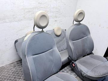 DescrizioneTappezzeria completa originale Fiat 500 3 porte, composta da sedili anteriori e posteriori in tessuto chiaro beige.