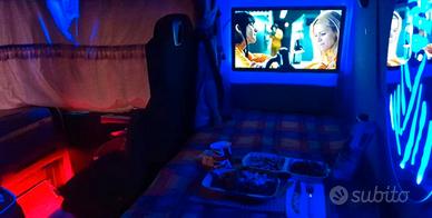 Buone condizioni, tappeto, cuscini poggia piedi con luce led soffusa rossa. Tavolino (cassettino estraibile del tavolino da sistemare la guida leggermente storta.
