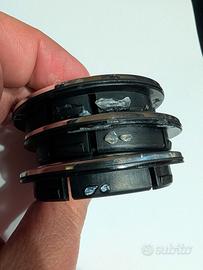 Vendo coprimozzi originali VolksWagen modello 5G0601171XQI, acquistati con misure sbagliate, (ne ho perso 1, per questo ne vendo solo 3), sono usati pochissimo e puliti. Presentano un piccolo residuo di colla usata per non farli staccare nel frattempo che acquistavo i nuovi, ma questo non crea problemi nel normale montaggio.