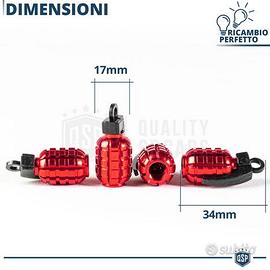 4 TAPPI COPRIVALVOLE ROSSI ""BOMBA A MANO"" Universali | Cappucci Valvola Pneumatici in Lega di Alluminio di Qualità per Auto e Moto - Look di Impatto, Simpatico Gadget IDEA REGALO - Installazione Plug & Play | Semplice sostituzione dell' originale - Qualità di Materiali | Antiruggine, Anticorrosione - Alta Resistenza | Resistente a Acqua, Polvere e Detriti COMPATIBILITÀ: - Universali, per Auto, Moto, Camion (Tutti i tipi di Cerchi e Pneumatici) INFO: - MASSIMA VERSATILITA': Universali, per Auto, Moto e Camion. Idonei per tutti i tipi di cerchi, in lega e non, e di pneumatici. - ECCELLENZA GARANTITA: Lega di Alluminio di Alta Qualità, con colorazione a pigmentazione (NO VERNICE) - ADERENZA PERFETTA: Sostituzione Plug & Play degli attuali Tappini di Serie - ALTA RESISTENZA: Resistenti a condizioni climatiche estreme e detriti da percorrenza Simpatici Gadget, perfetti come IDEA REGALO, rinnovano il look della vettura e conferiscono un tocco di Originalità. Prodotti in nuovi Robusti Materiali d'eccellenza, a pigmentazione colorata, (Non Verniciati), non perdono la loro colorazione e consistenza nel tempo, Pensati e Testati da oltre 6 anni, per l' esposizione agli agenti atmosferici e detriti di percorrenza. DETTAGLI TECNICI: - N° Pezzi : 4 - Materiale : Lega di Alluminio di Qualità - Colore: Rosso - Anodizzato - Peso: 5Gr (Singolo) - Dimensioni: 34mm (H) - 17mm (LAR) - Resistenza Schiacciamento: 55Kg - Temperatura di lavoro Compresa tra - 40°C / +65°C - Bloccaggio: Ad Avvitamento, Plug & Play - Condizioni : Nuovo - Confezionamento Originale: Busta Plastica PER INFO CONTATTARE AL 3927091031 ANCHE LINEA WhatsApp OPPURE VIA E-MAIL: rtautoitalia2018@libero.it CONSEGNA: - Effettuiamo Spedizioni 24-48H in TUTTA ITALIA - Ritiro in Sede con Possibilità di Visionare il Prodotto - Vendiamo solo Articoli Nuovi PAGAMENTI: - PayPal - Con Carta - Bonifico Bancario - Alla Consegna con Contrassegno