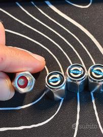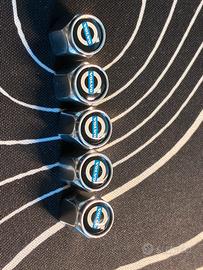 5 tappi per valvole pneumatici, in metallo cromati con logo Volvo, nuovi mai utilizzati, splendidi!!