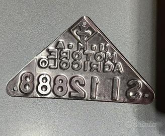 Vendo targhetta originale U.I.M.A. (Unione Italiana Motori Agricoli) per motore agricolo d’epoca, in metallo smaltato rosso, forma triangolare.
