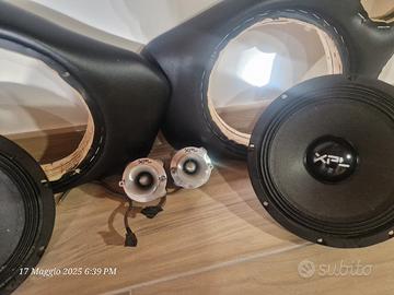 Vendo Coppia ti tasche per renault clio 4 con 2 alloggi per casse da 20 cm e un alloggio per tweetr da 10cm, più Coppia di casse XPL da 20cm e Coppia Tweeter XPL - XTW2503 NEO 200 watt MAX 100 db