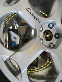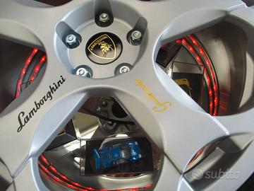 Tavolino a tema Lamborghini com ruota originale Gallardo.