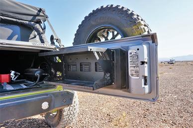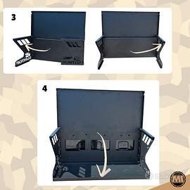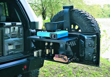 È un tavolo pieghevole per portellone (tailgate) compatibile senza modifiche con Jeep Wrangler JK e ADATTABILE ALLA MAGGIOR PARTE DEI MODELLI DI FUORISTRADA.
