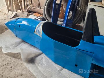Disponibile un telaio monoposto da corsa, in un accattivante blu brillante, come visibile nelle immagini.