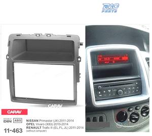 Adattatore cornice nero per autoradio 2-DIN per OPEL Vivaro (X83) 2010-2014 / NISSAN Primastar (J4) 2011-2014 / RENAULT Trafic II (EL / FL / JL) 2011-2014 (senza computer di bordo) (173 x 98 mm / 178 x 102 mm)