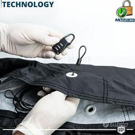 Copriauto da Esterno ELITE Professionale Nero 4 STAGIONI ""Per Auto Citycar Taglia M"" con Antifurto | PVC e Cotone Idraulico Spunlace | Resistente ai Raggi UV e Agenti Atmosferici più Avversi | GARANZIA A VITA - PROTEZIONE di Elevato Grado Grazie al Cotone Idraulico ""Spunlace"" Anti Micrograffi - RESISTENZA PVC a Raggi UV e Condizioni Meteorologiche più avverse, grazie a una Densità Elevatissima 250gr x m2 - IMPERMEABILITA' alle Particelle di Acqua e Umidità di 5.000 PA - ANTIFURTO di Serie Evita la possibilità che venga Rimosso e Allontana Occhi Indiscreti, Grazie a un Lucchetto Cifrato e un Cavo in Acciaio che percorre il Fondo Auto. - ESTETICA d' Elite, Nero Traslucido con 2 Linee Sinuose Catarifrangenti da 5mm, che lo Percorrono Totalmente, Seguendo le Forme della Carrozzeria. - FISSAGGIO Agevole supportato da una Molla che percorre il Fondo + Ganci + Alloggio Specchietti COMPATIBILITÀ: - Vetture del Segmento B - Su Utilitarie di Piccole Dimensioni (Lunghezza compresa tra 380 CM fino a MAX 400 CM) - Es. Audi A1, Volkswagen Polo, Peugeot 208 ecc... INFO: RAPPRESENTA il Più Alto Grado di Protezione da Esterno per Autovetture, Pensato e Testato da Molti Anni per Raggiungere l'Eccellenza in Tutte e 4 le STAGIONI. SCHEDA TECNICA: - Materiale Esterno: Pvc - Materiale Interno: Cotone Idraulico Spunlace - Densità: 250 Gr a Mq - Colore: Nero Traslucido - Linee Bianche Catarifrangenti - Grado Impermeabilità: 5.000PA - Molla Elastica Integrata: SI - Ganci di Fissaggio: SI - Termico: SI - Antistatico: SI - Antifurto: SI - Utilizzo: da Esterno, 4 Stagioni - Lunghezza Tot: 432 Cm - Larghezza Tot: 165 Cm - Altezza: 120Cm - Peso: 8 Kg - Confezionamento: Originale PER INFO CONTATTARE AL 3927091031 ANCHE LINEA WhatsApp OPPURE VIA E-MAIL: rtautoitalia2018@libero.it CONSEGNA: - Effettuiamo Spedizioni 24-48H in TUTTA ITALIA - Ritiro in Sede con Possibilità di Visionare il Prodotto PAGAMENTI: - PayPal - Con Carta -