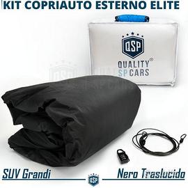 Copriauto da Esterno ELITE Professionale Nero 4 STAGIONI ""Per SUV Medi Taglia XL"" con Antifurto | PVC e Cotone Idraulico Spunlace | Resistente ai Raggi UV e Agenti Atmosferici più Avversi | GARANZIA A VITA - PROTEZIONE di Elevato Grado Grazie al Cotone Idraulico ""Spunlace"" Anti Micrograffi - RESISTENZA PVC a Raggi UV e Condizioni Meteorologiche più avverse, grazie a una Densità Elevatissima 250gr x m2 - IMPERMEABILITA' alle Particelle di Acqua e Umidità di 5.000 PA - ANTIFURTO di Serie Evita la possibilità che venga Rimosso e Allontana Occhi Indiscreti, Grazie a un Lucchetto Cifrato e un Cavo in Acciaio che percorre il Fondo Auto - ESTETICA d' Elite, Nero Traslucido con 2 Linee Sinuose Catarifrangenti da 5mm, che lo Percorrono Totalmente, Seguendo le Forme della Carrozzeria - FISSAGGIO Agevole supportato da una Molla che percorre il Fondo + Ganci + Alloggio Specchietti COMPATIBILITÀ: - Vetture del Segmento D - SUV Medi-Grandi - Su Suv di Medie-Grandi Dimensioni (Lunghezza compresa tra 460 cm e MAX 500 cm) - Es. Mercedes GLC, Audi Q5, Range Rover Velar ecc.. INFO: RAPPRESENTA il Più Alto Grado di Protezione da Esterno per Autovetture, Pensato e Testato da Molti Anni per Raggiungere l'Eccellenza in Tutte e 4 le STAGIONI SCHEDA TECNICA: - Materiale Esterno: Pvc - Materiale Interno: Cotone Idraulico Spunlace - Densità: 250 Gr a Mq - Colore: Nero Traslucido - Linee Bianche Catarifrangenti - Grado Impermeabilità: 5.000PA - Molla Elastica Integrata: SI - Ganci di Fissaggio: SI - Termico: SI - Antistatico: SI - Antifurto: SI - Utilizzo: da Esterno, 4 Stagioni - Lunghezza: 520 Cm - Larghezza: 185 Cm - Altezza: 155 Cm - Peso: 8 Kg - Confezionamento: Originale PER INFO CONTATTARE AL 3927091031 ANCHE LINEA WhatsApp OPPURE VIA E-MAIL: rtautoitalia2018@libero.it CONSEGNA: - Effettuiamo Spedizioni 24-48H in TUTTA ITALIA - Ritiro in Sede con Possibilità di Visionare il Prodotto PAGAMENTI: - PayPal - Con Carta -
