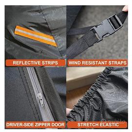 Telo copriauto da esterno x Fiat Panda o auto di piccole dimensioni. Copertura 7 strati, impermeabile, anti vento, anti UV, anti polvere. Con cerniere in corrispondenza delle portiere e ganci di fissaggio. Completo di sacchetto per riporto. Colore nero. Appena acquistato ed usato solo una volta.