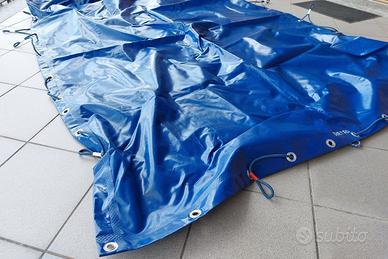 c) Blu, 185x240 cm, bordato e occhiellato con elastico, impermeabile e rinforzato in ottimo stato